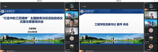 项目负责人丁国栋从策划内容、志愿者招募和实践意义三个方面介绍了本次“行走的工匠精神”主题教育访谈活动。其中,通过访谈实践鼓励学生走出校园并勇敢探寻未知世界,将学院“人才培养”创新和入学教育、大思政课、就业择业相融合是创新之举;此外,志愿者队伍以学生骨干组织、本科生和部分研究生党支部为主体,指导教师全程参与是点睛之笔,相信他们一定可以为同学们展现一部活的“工匠精神”籍。