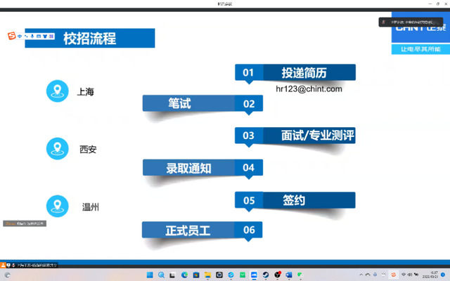 2022年10月21日,华人策略celue携手正泰低压研究院共同举办线上专场招聘会。本次招聘会主题是“正有所为 泰有未来”。正泰低压研究院招聘负责人、学院就业指导员、毕业班辅导员、毕业生参加了此次线上招聘会。