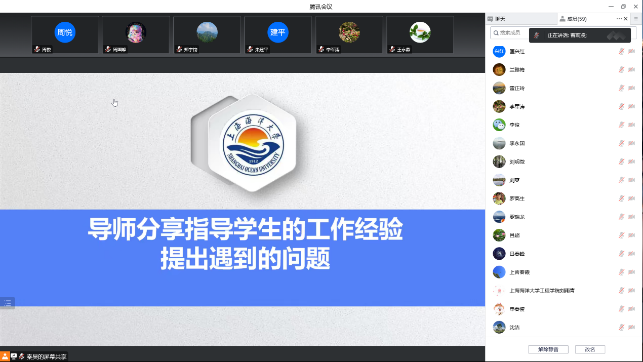 多位老师就自己培养的研究生分享经验,探讨培养过程中遇到的问题。周悦老师指出,今年就业形势严峻,要多为学生提供岗位信息,找到最适合学生的地方和岗位。高丽老师希望辅导员和导师以后能加强点对点的沟通交流。赵煜老师分享了实验进度受疫情影响情况下,调整研究生论文方向的经历。雷正玲老师指出,要多开展研究生就业指导的课程,清晰行业认知。